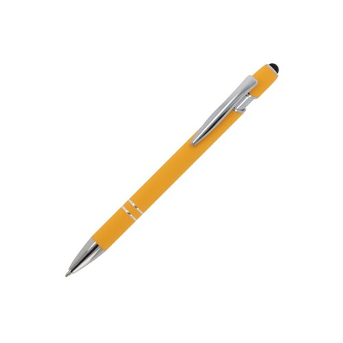 Stylo à bille en aluminium avec finition élégante au toucher doux et stylet. Clip en métal solide. Couleur d'écriture : bleu.