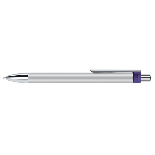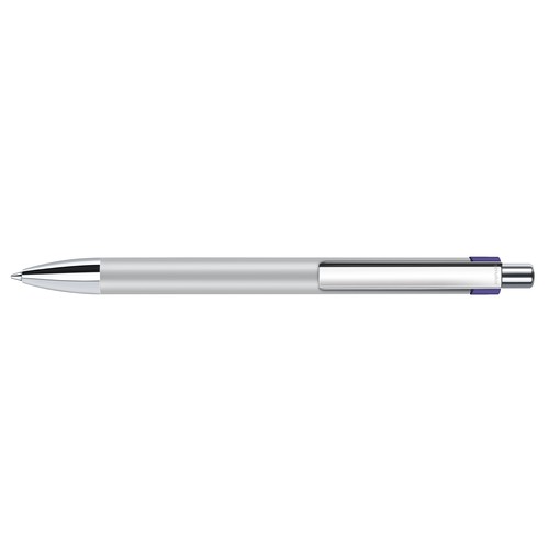 Stylo à bille fabriqué en Allemagne avec corps en métal laqué et partie haute en plastique. Attributs en métal chromé. Recharge métal super grande capacité, type G2, écriture bleue.