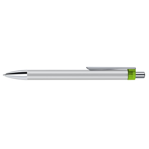 Stylo à bille fabriqué en Allemagne avec corps en métal laqué et partie haute en plastique. Attributs en métal chromé. Recharge métal super grande capacité, type G2, écriture bleue.