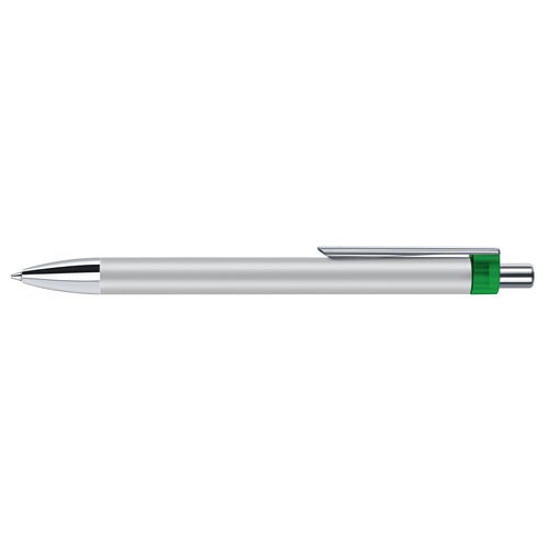 Stylo à bille fabriqué en Allemagne avec corps en métal laqué et partie haute en plastique. Attributs en métal chromé. Recharge métal super grande capacité, type G2, écriture bleue.
