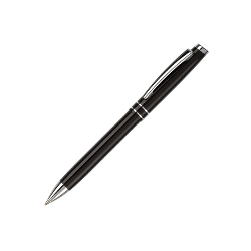 Stylo bille aluminium avec deux anneaux. Marquage laser possible. Ecriture bleue.