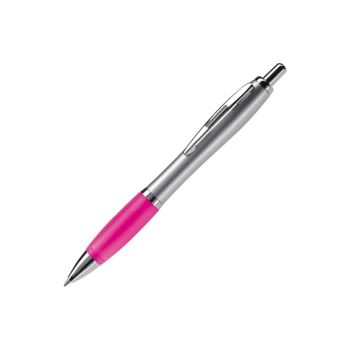 Stylo de couleur argent avec clip en métal. Existe en différentes couleurs. Cartouche d'encre bleue. Mécanisme en push. Marquage en tampographie ou en sérigraphie. Audit BSCI. Tous nos produits sont testés et certifiés, et répondent aux normes sociales.