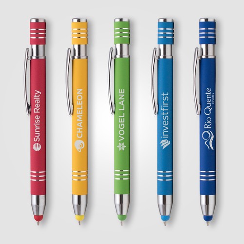 Le stylo bille Morrison finition gomme dispose d'un stylet et d'un bouton poussoir. Choisissez parmi une variété de couleurs éclatantes, toutes ornées de jolies bagues chromées. Personnalisez ce stylo bille avec Notre superbe gravure laser ou avec les couleurs éclatantes de Notre processus d'impression numérique ColourJet pour un rendu exceptionnel.