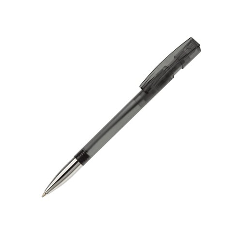 Stylo bille designed by Toppoint avec corps transparent, pointe métal et clip courbé. Avec cartouche encre bleue Maxi Refill Jumbo. Made in Germany.