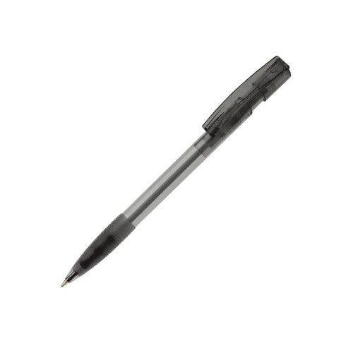 Stylo bille designed by Toppoint avec corps transparent, grip caoutchouc et clip courbé. Équipé d'une cartouche encre bleue X-20. Made in Germany.