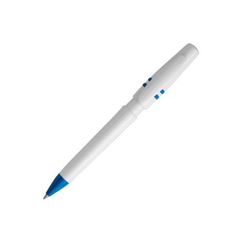 Stylo bille Nora de couleur opaque avec corps et clip blancs. Les anneaux du poussoir sont colorés. Cartouche Jumbo pouvant écrire jusqu’à 4.5 km. Le stylo est fabriqué en Europe en plastique ABS. À partir de 5.000 pièces, vous pouvez choisir vos propres couleurs.
