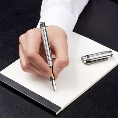 Version un peu plus inattendue et raffinée de notre nouvelle collection d'écriture "Bold", cette pièce d'écriture est entièrement gravée de rayures horizontales. Cette partie de l'assortiment est une déclaration de style et d'élégance en soi et est proposée en 3 luxueuses couleurs de placage métallique : Black, gun et chrome Luxurious. Jouer avec les contrastes de couleurs, les finitions et les détails raffinés est la clé de notre processus de conception. Chaque élément se complète subtilement pour un résultat à la fois élégant et sans effort.