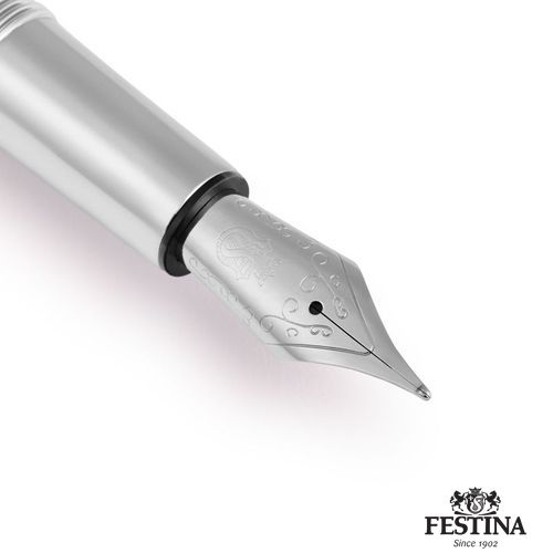 Le stylo plume Chronobike, avec son capuchon noir brossé et son corps chromé, incarne l'essence de la modernité et de l'aérodynamisme de la collection. Sa forme ovoïde et élégante évoque le mouvement et l'élégance, tandis que les accents chromés soulignent son design sophistiqué. Les détails caractéristiques, tels que la partie supérieure inspirée du bouton d'arrêt de la montre Chronobike et l'audacieux Festina Blason, soulignent son savoir- faire distinctif. Complété par l'agrafe caractéristique de la ligne, ce stylo allie harmonieusement style et fonctionnalité, mettant en évidence le dévouement de Festina à la précision et l'attention méticuleuse portée aux détails.
