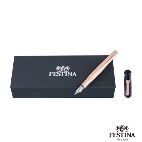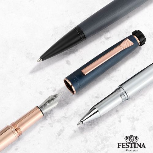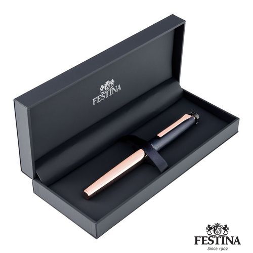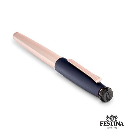 Le stylo plume Chronobike, avec son capuchon brossé marine et son corps en or rose, incarne l'essence de la modernité et de l'aérodynamisme de la collection. Sa forme ovoïde et élégante évoque le mouvement et l'élégance, tandis que les touches d'or rose soulignent son design sophistiqué. Des détails caractéristiques, tels que la partie supérieure inspirée du bouton d'arrêt de la montre Chronobike et l'audacieux Festina Blason, soulignent son savoir- faire distinctif. Complété par l'agrafe caractéristique de la ligne, ce stylo allie harmonieusement style et fonctionnalité, mettant en évidence le dévouement de Festina à la précision et l'attention méticuleuse portée aux détails.
