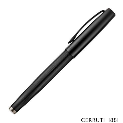 The Cerruti 1881 matte black fountain pen embodies modern luxurious minimalism with a smooth cap engraved with the new two- row Cerruti 1881 logo and a pinstripe- engraved lower barrel. Finished in matte black, it delivers a bold, understated interpretation of classical writing.