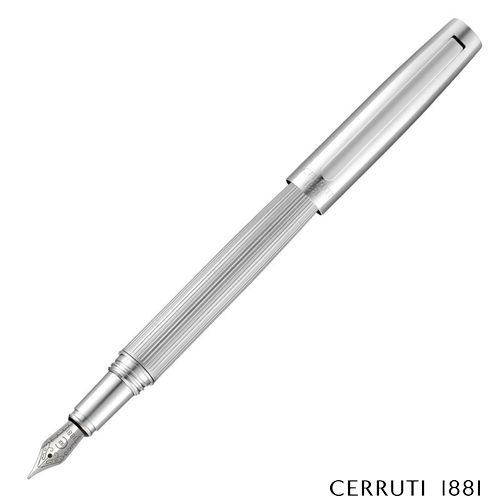 The Cerruti 1881 chrome fountain pen is defined by luxurious minimalism, featuring a smooth cap engraved with the new two- row Cerruti 1881 logo, contrasted by a pinstripe- engraved lower barrel. Executed in crisp, timeless chrome, it offers a refined expression of classical writing with a modern edge.