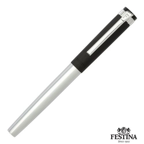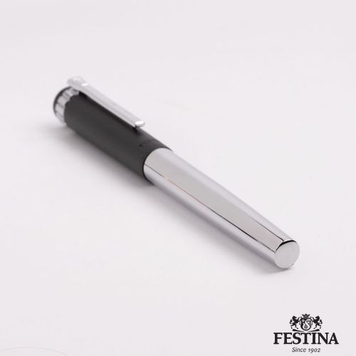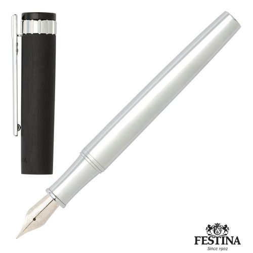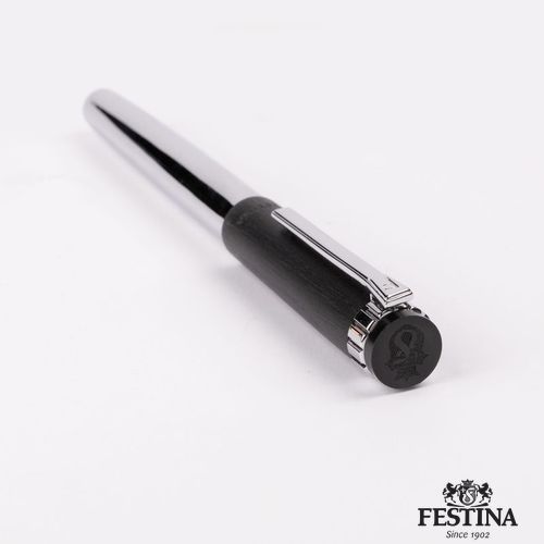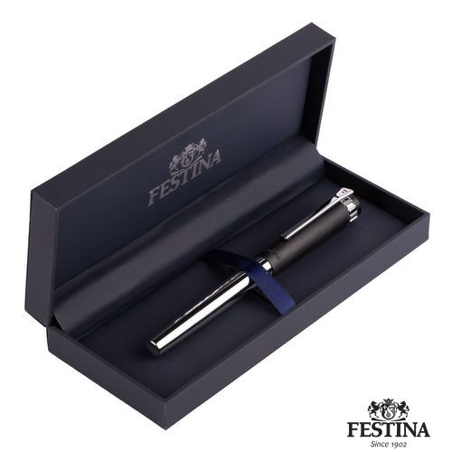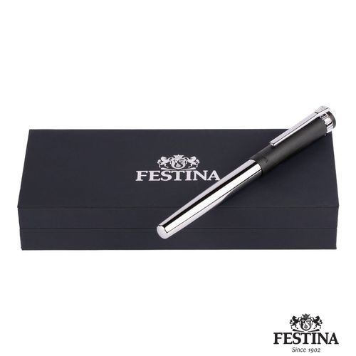 Paré de textures et d'ornements typiques inspirés des montres Festina, le stylo plume Prestige se présente sous des traits nobles, avec un contour et des tons délicats : association d'un capuchon noir brossé avec un corps et des garnitures chromées brillantes.