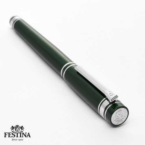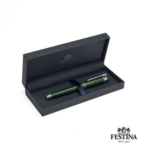 Notre nouvelle silhouette "Bold" est imposante, luxueuse et distincte. Son cadre légèrement surdimensionné est proposé dans des laques luxueuses et brillantes, rehaussées d'accents chromés éclatants, avec des gravures détaillées. Cette pièce d'écriture remarquable est complétée par notre clip emblématique, délicatement travaillé, révélant le symbole F. Le Bold Classic est proposé dans une palette de couleurs élégantes : Le Bold Classic est proposé dans une palette de couleurs élégantes : vert foncé, marine et noir. Le haut de notre stylo Bold est gravé du blason Festina, un élément de design présent dans toute notre collection d'écriture.