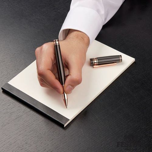 Version un peu plus inattendue et raffinée de notre nouvelle collection d'écriture "Bold", cette pièce d'écriture est entièrement gravée de rayures horizontales. Cette partie de l'assortiment est une déclaration de style et d'élégance en soi et est proposée en 3 luxueuses couleurs de placage métallique : Black, gun et chrome Luxurious. Jouer avec les contrastes de couleurs, les finitions et les détails raffinés est la clé de notre processus de conception. Chaque élément se complète subtilement pour un résultat à la fois élégant et sans effort.