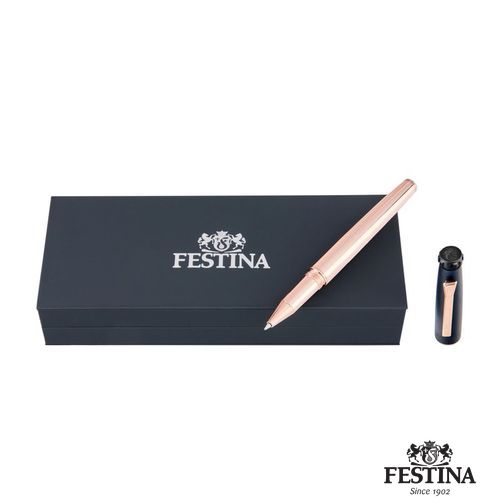 Le stylo roller Chronobike, avec son capuchon brossé marine et son corps en or rose, incarne l'essence de la modernité et de l'aérodynamisme de la collection. Sa forme ovoïde et élégante évoque le mouvement et l'élégance, tandis que les touches d'or rose soulignent son design sophistiqué. Des détails caractéristiques, tels que la partie supérieure inspirée du bouton d'arrêt de la montre Chronobike et l'audacieux Festina Blason, soulignent son savoir- faire distinctif. Complété par l'agrafe caractéristique de la ligne, ce stylo allie harmonieusement style et fonctionnalité, mettant en évidence le dévouement de Festina à la précision et l'attention méticuleuse portée aux détails.