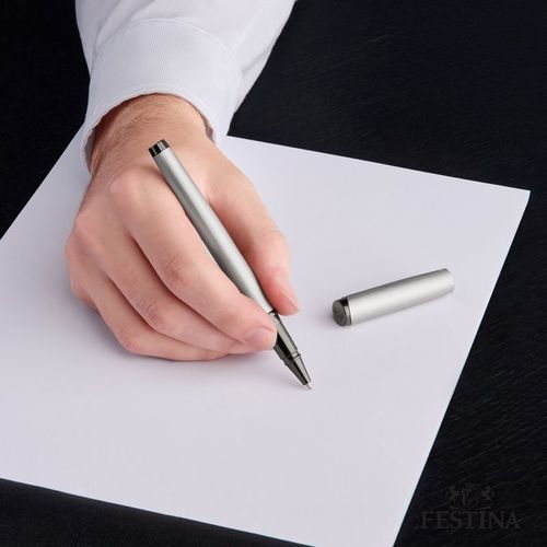 Le nouveau stylo roller "Originals" en aluminium brossé chromé avec des garnitures en pistolet brillant est un instrument d'écriture élégant et polyvalent. La finition chromée polie ajoute une touche de modernité à la structure minimaliste, tandis que les garnitures brillantes en aluminium offrent un contraste saisissant. Conçu avec soin, il présente l'emblématique agrafe gravée en F, le blason distinctif au sommet et une finition en aluminium brossé qui lui confère un attrait léger et sans effort. Conçu pour la précision et la praticité, ce stylo allie harmonieusement style et fonctionnalité, ce qui en fait un choix idéal pour toute tâche d'écriture.