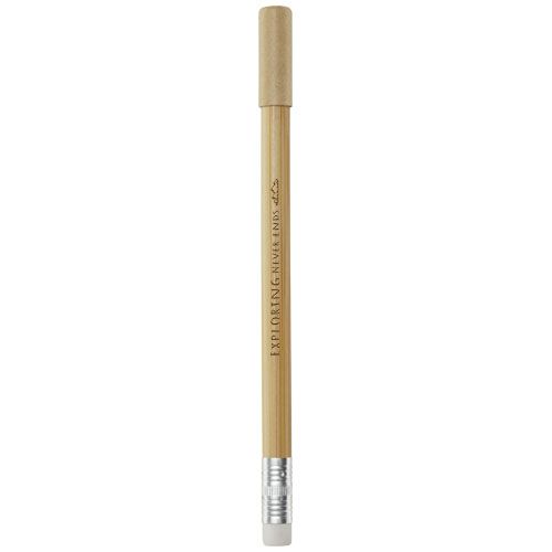 Le stylo sans encre Krajono en bambou ne nécessite pas de cartouches d'encre ni de recharge. La pointe en graphite noir du stylo est conçue pour laisser des traces visibles lorsqu'elle entre en contact avec la surface d'écriture. Le choix d'un stylo sans encre en bambou favorise des choix plus durables et encourage l'utilisation de matériaux renouvelables. Le stylo comprend une gomme à effacer sur le dessus. Longueur d'écriture : 1500 mètres. Taille de la plume : 0,5 mm.