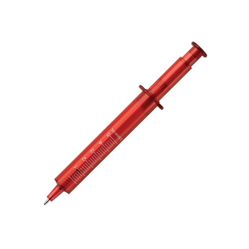 Ce stylo en forme de seringue apporte une touche unique d'inspiration médicale à votre écriture. Disponible en plusieurs couleurs : rouge avec encre rouge, bleu avec encre bleue et transparent avec encre noire.Matières :AS