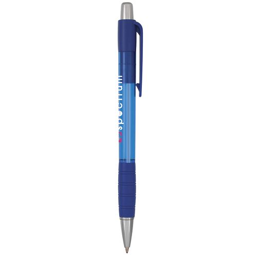 Stylo à bille rétractable populaire avec corps de couleur translucide, attribut de couleur solide et touches chromées.