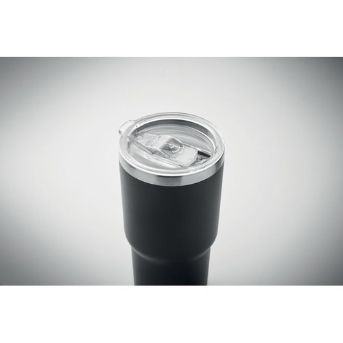 Gobelet à double paroi en acier inoxydable recyclé (90 % d'acier inoxydable recyclé et 10 % d'acier inoxydable). Couvercle avec ouverture pour boire. Anti fuite. Capacité de 500 ml.