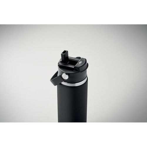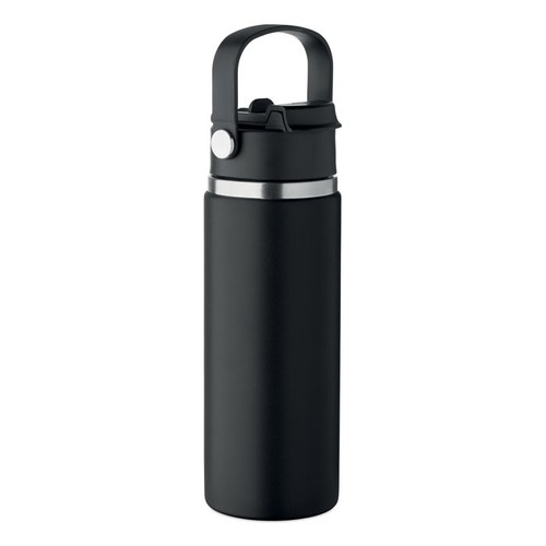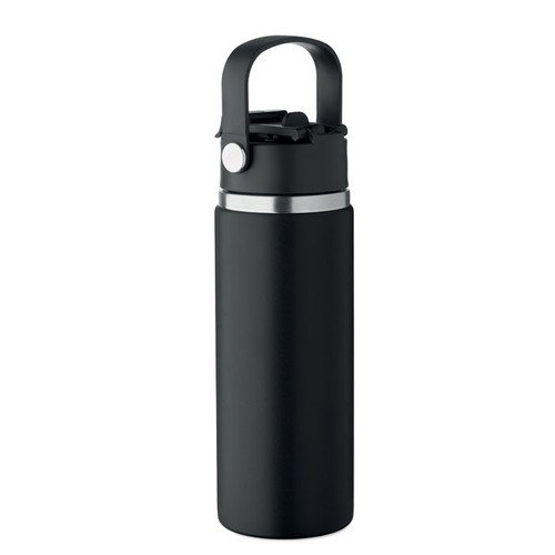 Bouteille isotherme à double paroi en acier inoxydable recyclé (90 % d'acier inoxydable recyclé et 10 % d'acier inoxydable) avec paille et embout, avec poignée. Anti fuite. Capacité : 500 ml.