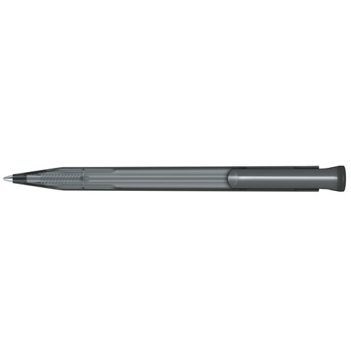 Stylo à bille rétractable avec corps en plastique aspect givré et clip en plastique brillant.