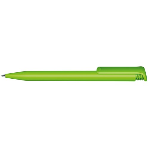 Stylo à bille rétractable avec corps en plastique mat et clip en plastique brillant.