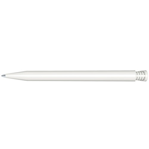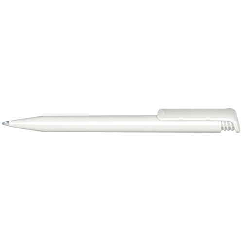 Stylo à bille rétractable avec corps et clip en plastique opaque.