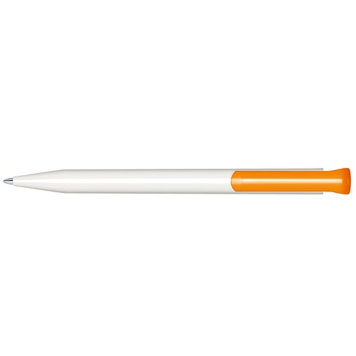 Stylo à bille rétractable avec corps en plastique blanc et clip de couleur.