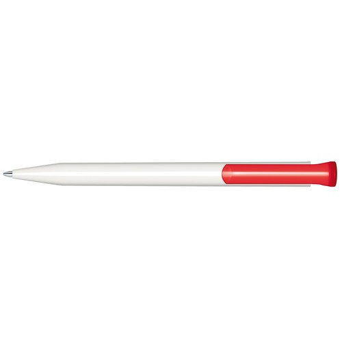 Stylo à bille rétractable avec corps en plastique blanc et clip de couleur.
