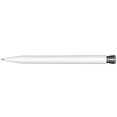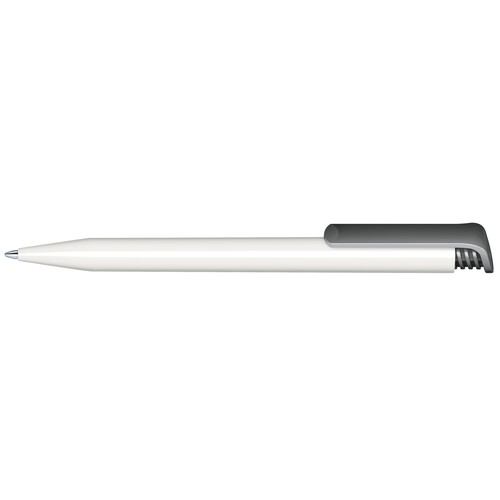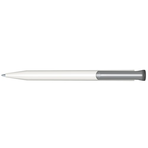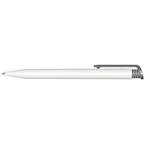Stylo à bille rétractable avec corps en plastique blanc et clip de couleur.