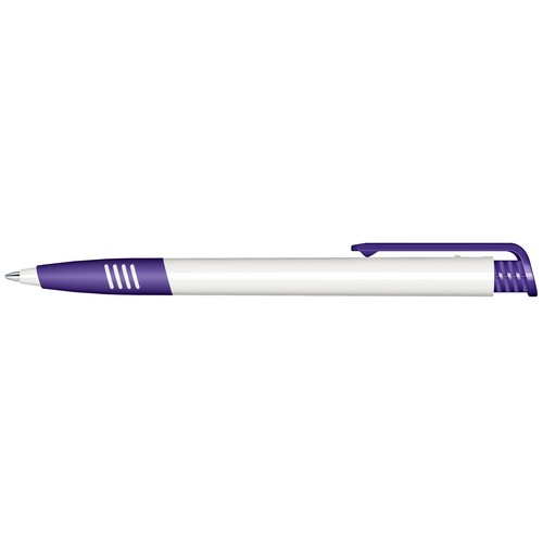 Stylo à bille rétractable avec corps en plastique blanc et clip et grip souple de couleur.