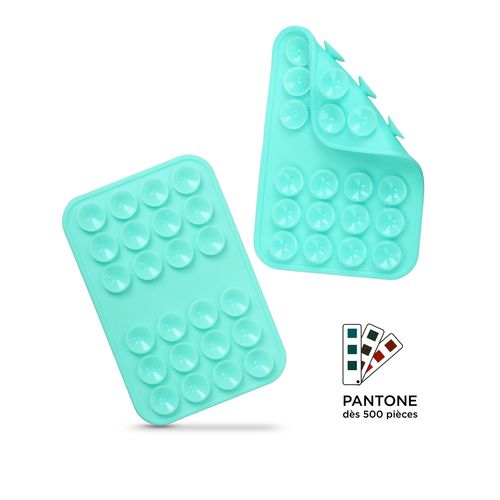 Conçu en silicone souple et résistant, il adhère grâce à ses ventouses sur les deux faces, offrant une tenue parfaite sur toutes surfaces lisses comme sur votre smartphone. Disponible en 4 coloris standards ou personnalisable à votre pantone dès 500 pièces, il s’adapte à votre communication.