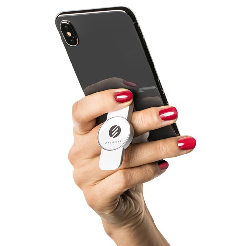 La nouvelle tendance : avec le FLIPSOCKET pratique, vous maîtrisez parfaitement votre smartphone. Il est auto- adhésif, pliable et facile à fixer à l'arrière de votre appareil. Utilisez- le comme support et faites- le pivoter pour les vues paysage et portrait. Le visionnage mobile de vidéos devient un vrai plaisir. Comme manette pour votre smartphone, vous avez toujours une prise ferme lorsque vous passez des appels téléphoniques, chattez ou écrivez des messages SMS. Parfait comme cadeau ! Personnalisez- le avec une impression en Doming ou UV et faites- en votre support publicitaire unique.