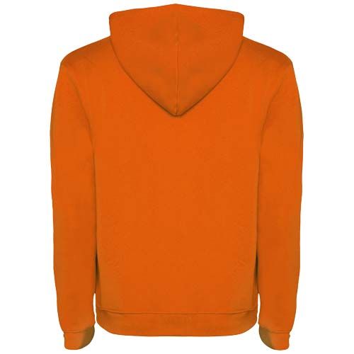 Sweat à capuche avec double tissu, cordon de serrage réglable, coutures couvertes renforcées au niveau du col et poche de style kangourou. Disponible en uni et bicolore. Bord- côte en élasthanne 1x1 aux poignets et à la taille. Étiquette amovible. Le modèle mesure 185 cm et porte la taille M.