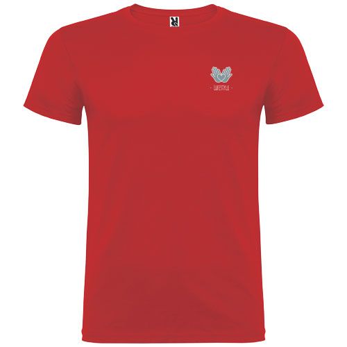 T- shirt à manches courtes avec col rond double épaisseur en élasthanne en tissu avec coutures latérales. Coutures recouvertes renforcées au col. Étiquette détachable. Le mannequin mesure 120 cm et porte la taille 5/6.