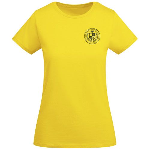T- shirt ajusté à manches courtes pour femme en coton organique. Col rond côtelé 1x1. Coutures recouvertes renforcées au col. Coutures latérales. Étiquette détachable.