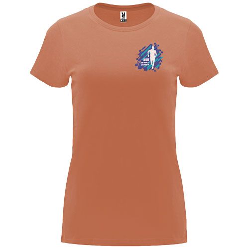 T- shirt ajusté à manches courtes pour femme. Col rond côtelé 1x1. Coutures recouvertes renforcées au col. Étiquette détachable.