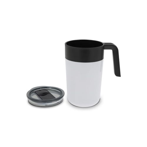 Tasse à café à double paroi avec couvercle.Inox à l'extérieur et PP à l'intérieur. Cette conception maintient le café/thé au chaud plus longtemps grâce à la double paroi son couvercle. Ce dernier présente une un ouverture qui permet de boire et qui peut se fermer. Livré dans un coffret cadeau.Matières :Acier inoxydable, PP, AS