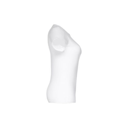 T- shirt ceinturé pour femme en maille jersey 100% coton (190 g/m²) avec fil de coton cardé. Contient un col en jersey fin avec un ruban de propreté en satin. Pièce coupée et cousue avec double surpiqûre sur les manches et le bas. Tailles: S, M, L, XL, XXL