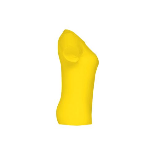 T- shirt ceinturé pour femme en maille jersey 100% coton (190 g/m²) avec fil de coton cardé (couleur 183: 90% coton/10% viscose). Contient un col en jersey fin avec un ruban de propreté en satin. Pièce coupée et cousue avec double surpiqûre sur les manches et le bas. Tailles: S, M, L, XL, XXL