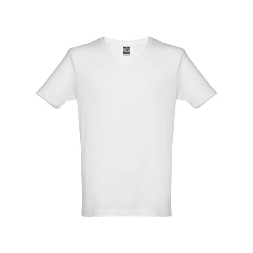 T- shirt pour homme de forme tubulaire et coupe régulière en maille jersey 100% coton (150 g/m²) avec fil de coton cardé. Contient un col en jersey en" V" renforcé à l'intérieur avec un ruban en jersey. Double couture sur les manches et le bas. Tailles: S, M, L, XL, XXL