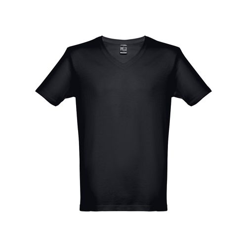 T- shirt pour homme de forme tubulaire et coupe régulière en maille jersey 100% coton (150 g/m²) avec fil de coton cardé (couleurs : 194, 195 et 199 : 60% coton/40% polyester). Contient un col en jersey en" V" renforcé à l'intérieur avec un ruban en jersey. Double couture sur les manches et le bas. Tailles: S, M, L, XL, XXL
