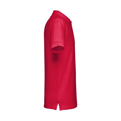 Polo à manches courtes pour homme en maille piquée 100% coton (240 g/m²) (couleur 183 : 85% coton/15% viscose). Coupe classique avec col et manches côtelés et bande de renfort sur le col en maille piquée. Patte de boutonnage renforcée avec 3 boutons colorés (bouton de remplacement inséré dans la couture intérieure). Pièce coupée et cousue avec de petites ouvertures latérales en bas. Étiquette amovible visible. Tailles: S, M, L, XL, XXL
