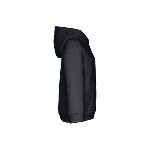 Sweatshirt pour enfant (unisexe) avec capuche en 50% coton et 50% polyester (320 g/m²) et intérieur molleton. Capuche doublée de jersey, conforme aux normes de sécurité de l'Union européenne. Sweatshirt avec poche marsupiale et côte 1x1 aux poignets et à la taille. Tailles: 2, 4, 6, 8, 10, 12