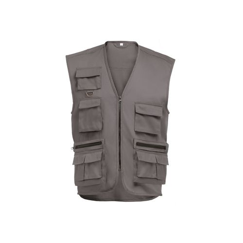 Gilet multi- poches en polyester (65%) et coton (35%) (200 g/m²) avec traitement hydrofuge. Convient aux reporters et autres professions de terrain. Tailles: S, M, L, XL, XXL