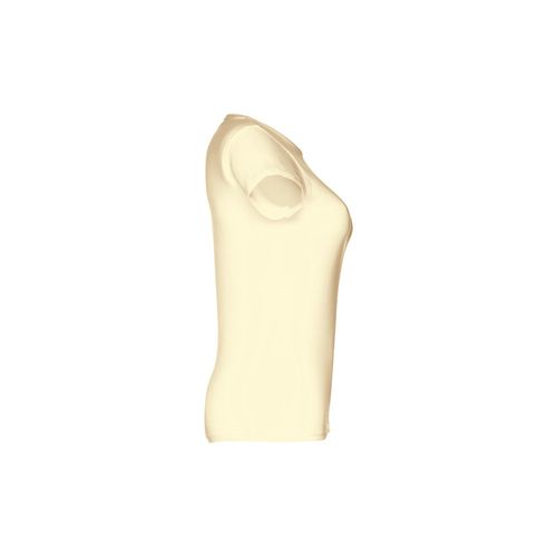 T- shirt ceinturé pour femme en maille jersey 100% coton (150 g/m²) avec fil de coton cardé (couleur 183: 90% coton/10% viscose, couleur 196: 98% coton/2% viscose). Contient un col fin en jersey double avec un ruban de renfort en satin. Pièce coupée et cousue avec double couture sur les manches et le bas. Tailles: S, M, L, XL, XXL