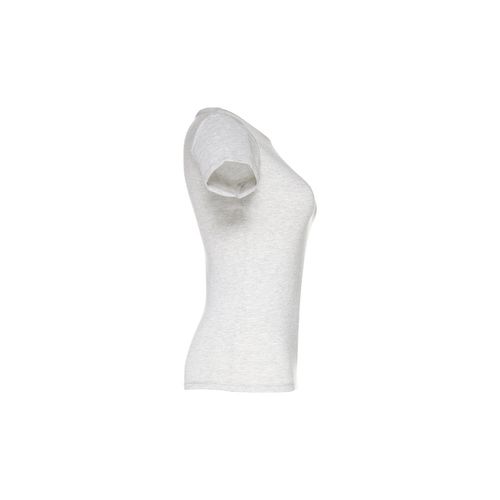 T- shirt ceinturé pour femme en maille jersey 100% coton (150 g/m²) avec fil de coton cardé (couleur 183: 90% coton/10% viscose, couleur 196: 98% coton/2% viscose). Contient un col fin en jersey double avec un ruban de renfort en satin. Pièce coupée et cousue avec double couture sur les manches et le bas. Tailles: S, M, L, XL, XXL