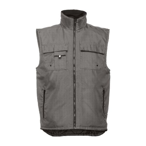Gilet de travail pour homme rembourré, avec doublure, en 100% polyester oxford avec un revêtement acrylique (170 g/m²) et intérieur en polyster 100% taffetas (65 g/m²). Avec col doublé de maille polaire et élastique latéral pour un meilleur ajustement au corps. Contient 6 poches: 5 à l'avant, dont 2 zippés, plus 1 pour téléphone portable et 1 poche intérieure. Accès avec fermeture à l'arrière pour une personnalisation facile. Tailles: S, M, L, XL, XXL, 3XL