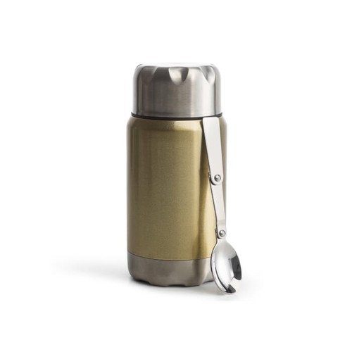 Petite bouteille thermos pratique avec un petit plus. Design élégant en acier inoxydable avec une petite cuillère pliante dans le couvercle. Le large goulot la rend facile à nettoyer et parfaite pour la remplir de soupe, par exemple. Conserve vos aliments ou vos boissons au frais pendant 24 heures ou au chaud pendant 12 heures.